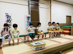 今月の誕生児の紹介です。みんなの前でお祝いしてもらいました。
