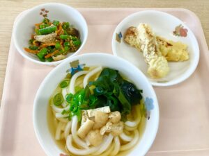 10月24日(金)、今日のメニューは、わかめうどん、ちくわの天ぷら、いんげんの胡麻和えでした。