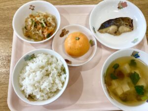 12月5日(金)、今日のメニューは、さわらの幽庵焼き、切干大根の煮物、なめこ汁、みかんでした。