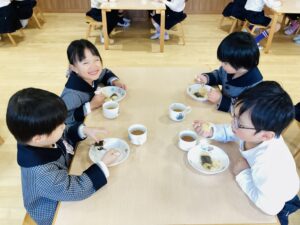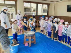 お昼からは、『もちつきのいわれ』などの食育のお話をしました。