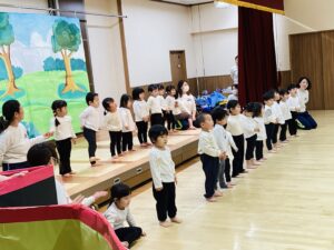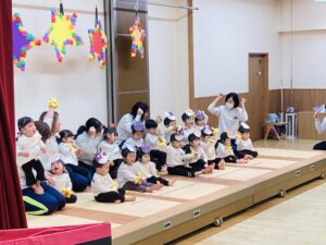 先日園内の遊戯室で未満児のお楽しみ会(発表会)を行いました。